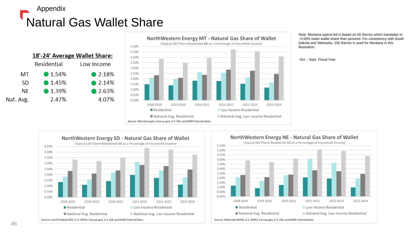 Natural Gas Wallet Share Appendix 46 Note: Montana typical bill is based on 65 therms which translates to ~0.50% lower wallet share than pictured. For consistency with South Dakota and Nebraska, 100 therms is used for Montana in this illustration. Oct. - Sept. Fiscal Year