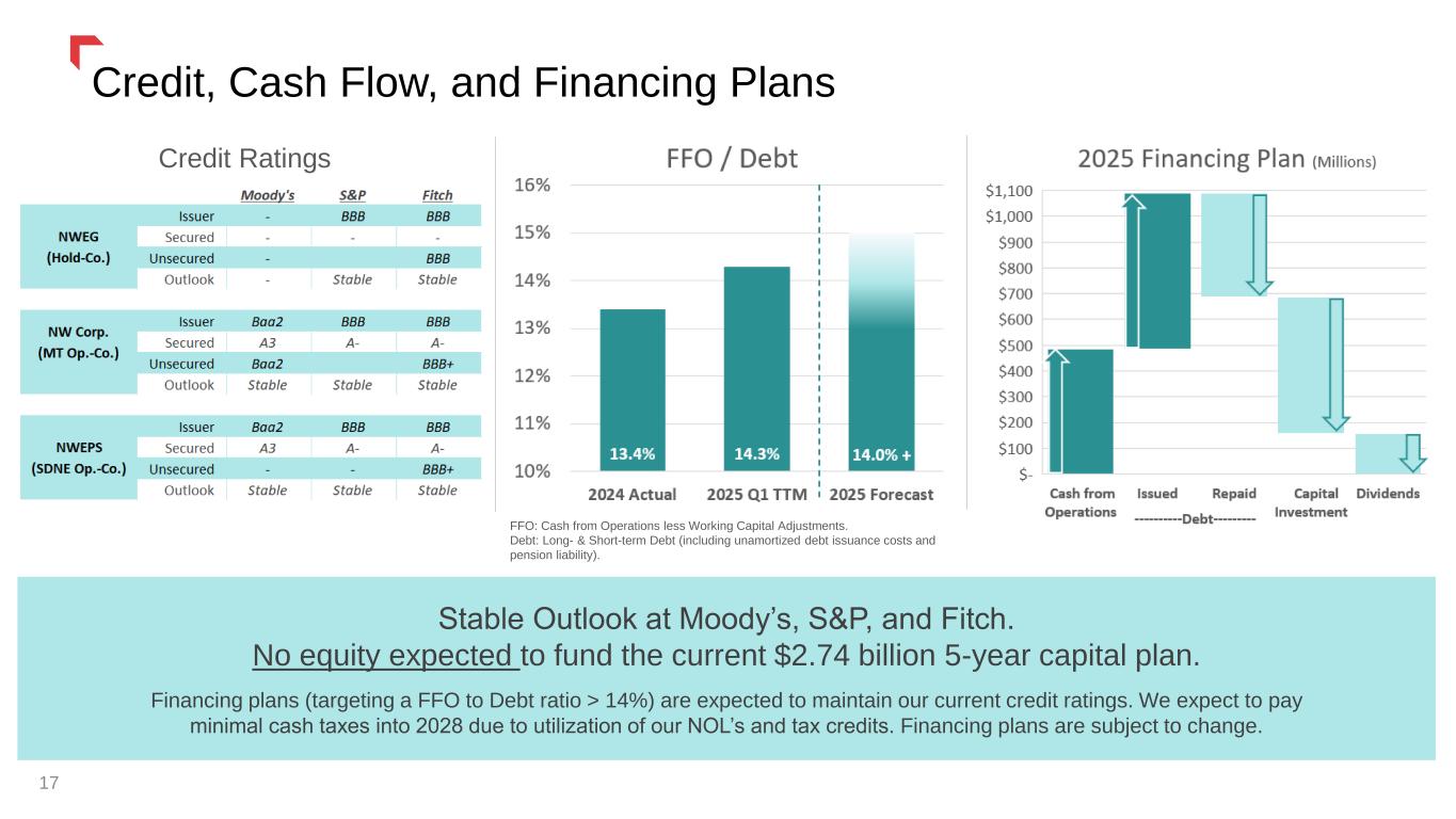 MPSC approval of the Joint Party Settlement would allow for recovery of increased operating costs and an opportunity to earn a fair return on the investment that funds the critical energy infrastructure in Montana. 16 Montana Natural Gas Rate Review Key Dates • 5/23/25: Interim rates remain in place as implemented Dec. 1, 2024 (subject to refund) • 6/9/25: Hearing Commences