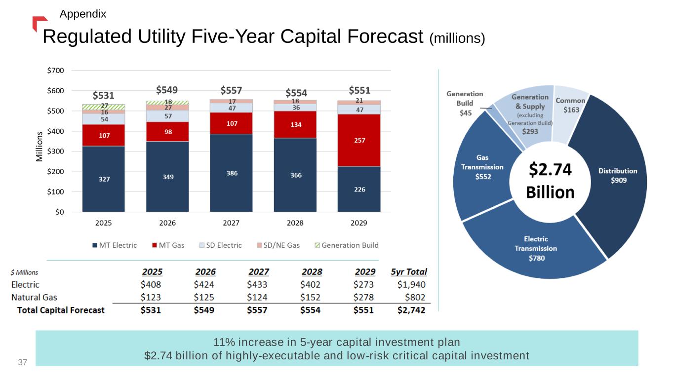 11% increase in 5-year capital investment plan $2.74 billion of highly-executable and low-risk critical capital investment Regulated Utility Five-Year Capital Forecast (millions) 37 Appendix