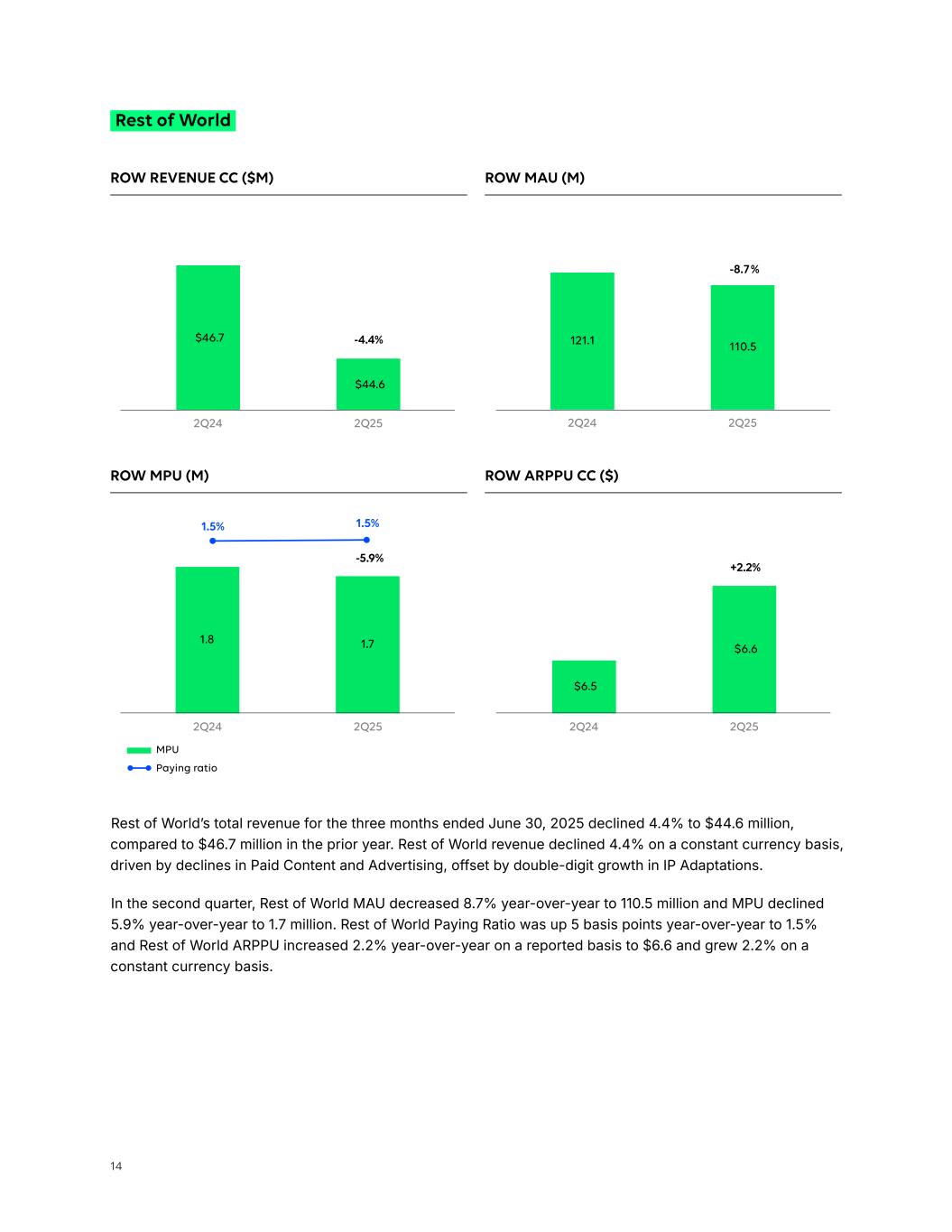 This release contains forward-looking statements within the meaning of the safe harbor provisions of the U.S. Private Securities Litigation Reform Act of 1995, and involves risks, assumptions and uncertainties that could cause actual results to differ materially from those expressed or implied by forward-looking statements. Forward-looking statements cover all matters which are not historical facts and include, without limitation, statements or guidance regarding or relating to our future financial position, results of operations and growth, plans and objectives for future capabilities, ability to attract users in both our core and underpenetrated geographies, ability to grow our Paid Content, Advertising and IP Adaptations businesses, the impact of our product development initiatives, including our use of AI, our financial condition and liquidity, and other statements concerning the success of our business and strategies. Forward-looking statements may be identified by the use of words such as “anticipate,” “intend,” “plan,” “goal,” “seek,” “believe,” “project,” “estimate,” “expect,” “strategy,” “future,” “likely,” “may,” “should,” “will” and similar references to future periods. Forward-looking statements speak only as of the date on which they are made. They are not assurances of future performance and are based only on our current beliefs, expectations and assumptions regarding the future of our business, future plans and strategies, projections, anticipated events and trends, the economy and other future conditions. Therefore, you should not place undue reliance on any of these forward-looking statements.