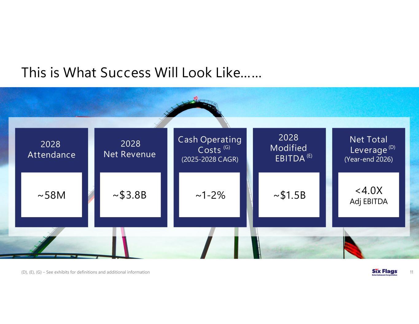 We Are Well Underway Executing on our Business Model Targets to Achieve Success in 2028 (A), (B), (D) – See exhibits for definitions and additional information 10 Laser focus on cost management ‒ $180M savings by end of 2026 2 3 Impressive Modified EBITDA Margin (A) expansion ‒ ~40% by 2028 1 Sustainable revenue growth ‒ ~6% CAGR from 2025 to 2028 4 Significant growth in Free Cash Flow (B) ‒ Up ~$400M in 2028 vs. projected 2025 Reduced Net Total Leverage (D) ‒ <4.0x by end of 2026 5