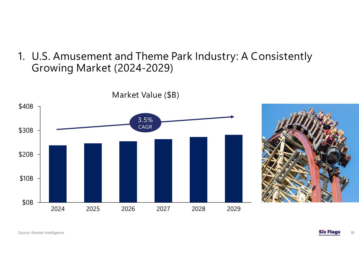 Market Leader with Unique Positioning 17 2 1 3 Unmatched scale with geographic diversity Opportunity to expand penetration rates and market share Resilient and stable business model Regional parks with steady growth Irreplaceable, iconic parks in growing markets creates high barrier to entry 3 4 5 2 1