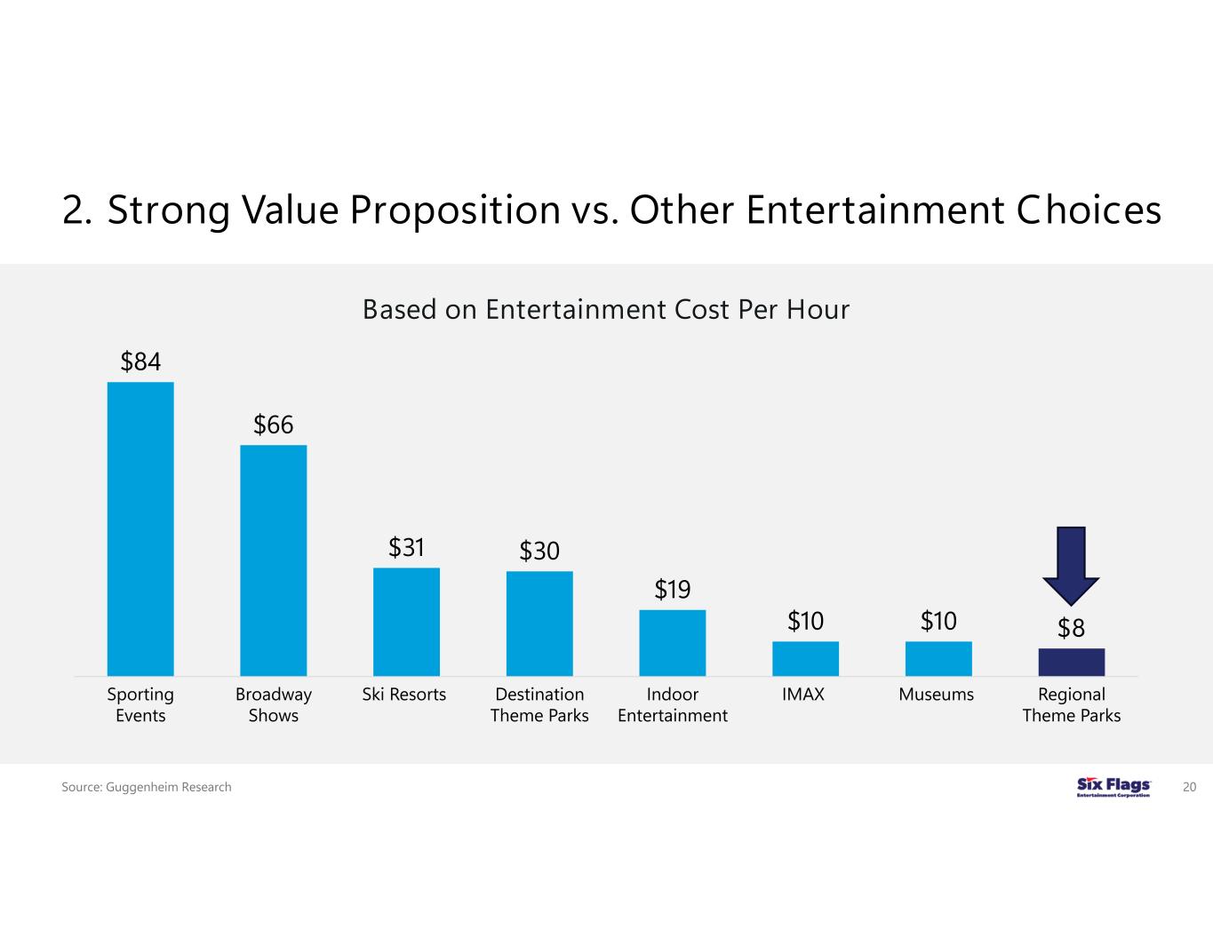 $84 $66 $31 $30 $19 $10 $10 $8 Sporting Events Broadway Shows Ski Resorts Destination Theme Parks Indoor Entertainment IMAX Museums Regional Theme Parks 2. Strong Value Proposition vs. Other Entertainment Choices Source: Guggenheim Research 20 Based on Entertainment Cost Per Hour