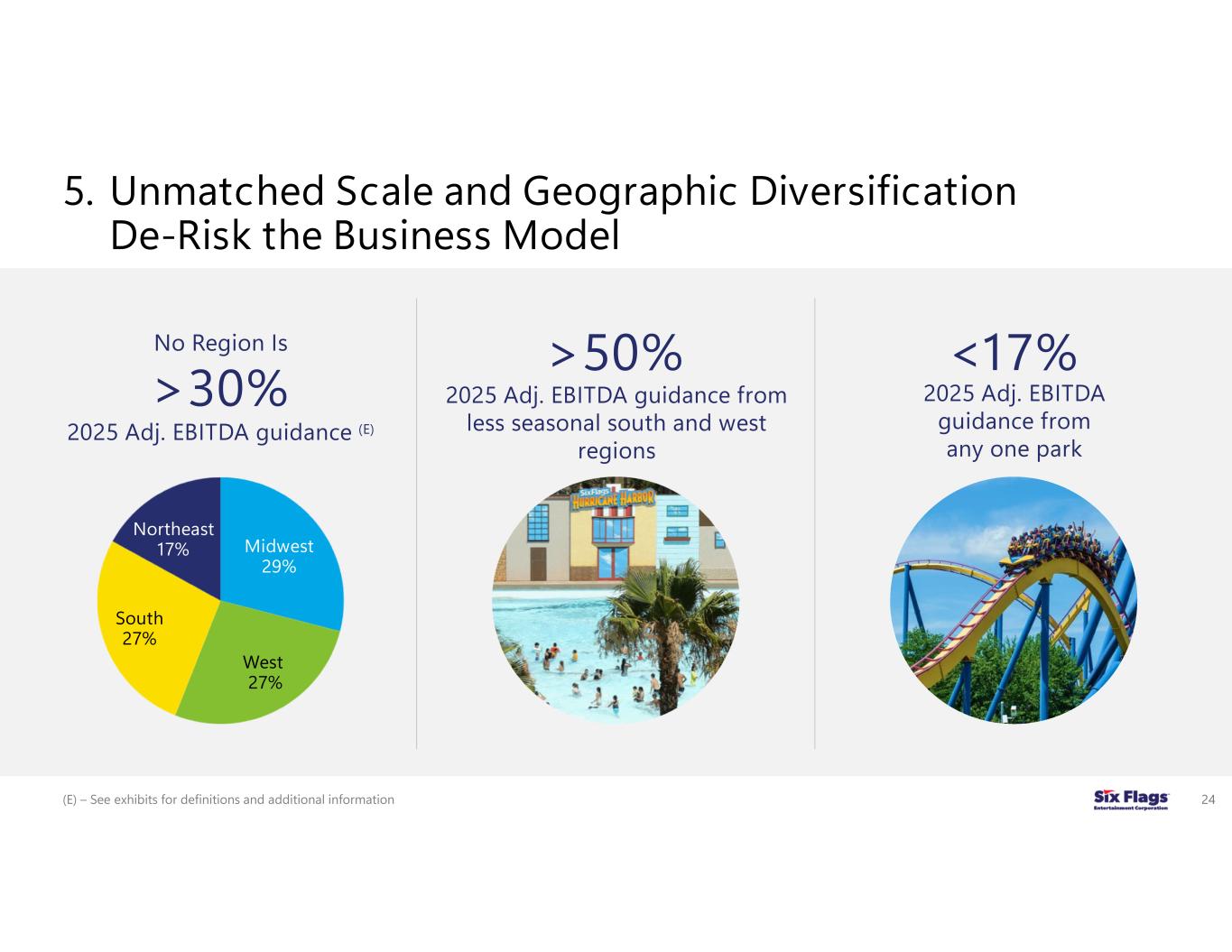 5. Unmatched Scale and Geographic Diversification De-Risk the Business Model 24 Midwest 29% West 27% South 27% Northeast 17% No Region Is >30% 2025 Adj. EBITDA guidance (E) >50% 2025 Adj. EBITDA guidance from less seasonal south and west regions <17% 2025 Adj. EBITDA guidance from any one park (E) – See exhibits for definitions and additional information