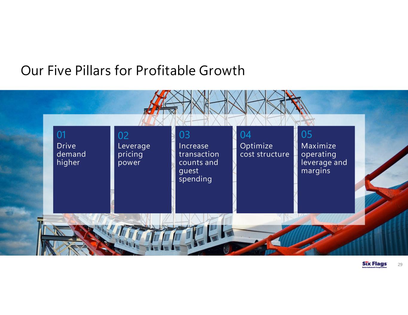 Agenda: The New Six Flags – Leveraging Effective Strategies for Profitable Growth 28 Market leader with unique positioning Our strategy to drive sustained growth Building on a strong foundation Integration execution update