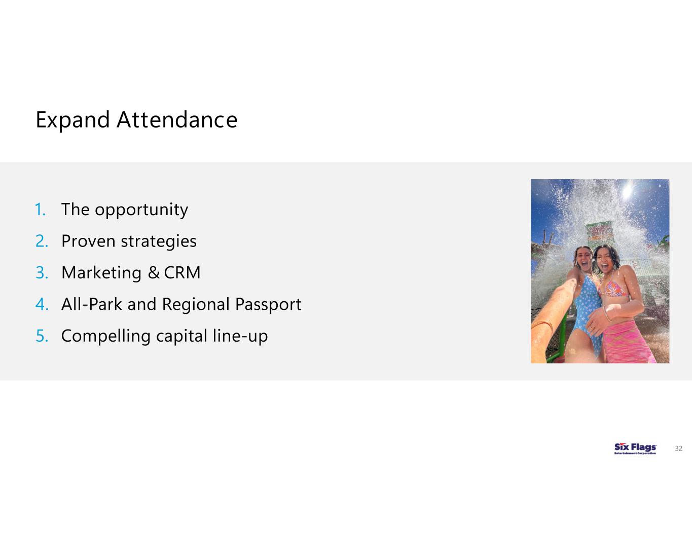 Expand Attendance 32 1. The opportunity 2. Proven strategies 3. Marketing & CRM 4. All-Park and Regional Passport 5. Compelling capital line-up