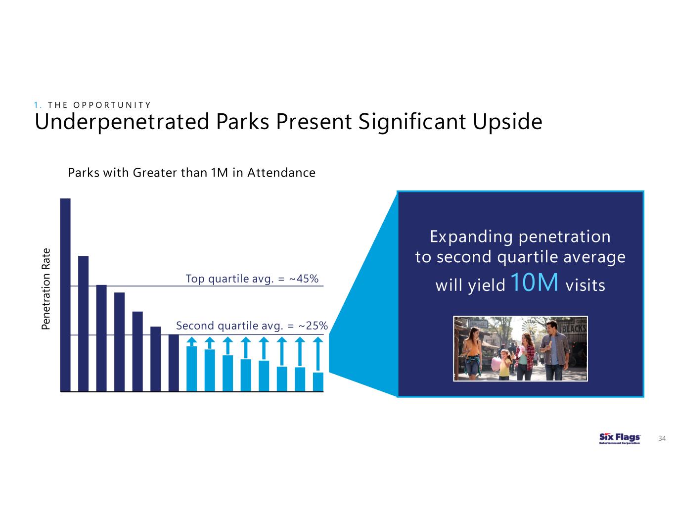 34 Pe ne tr at io n Ra te Top quartile avg. = ~45% Second quartile avg. = ~25% Expanding penetration to second quartile average will yield 10M visits Parks with Greater than 1M in Attendance 1 . T H E O P P O R T U N I T Y Underpenetrated Parks Present Significant Upside