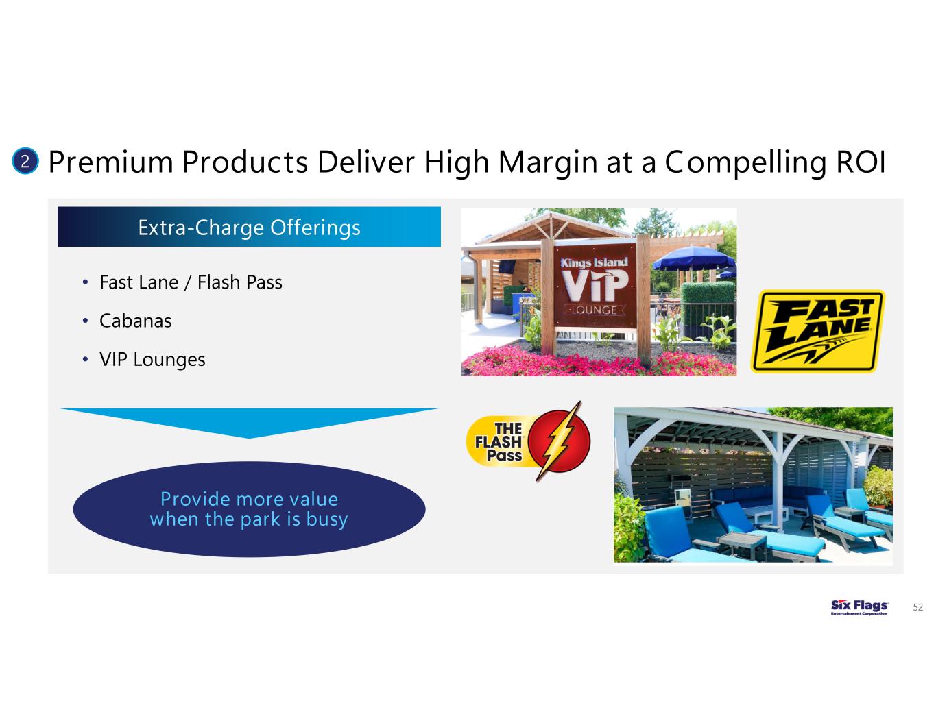 Premium Products Deliver High Margin at a Compelling ROI 52 2 • Fast Lane / Flash Pass • Cabanas • VIP Lounges Extra-Charge Offerings Provide more value when the park is busy