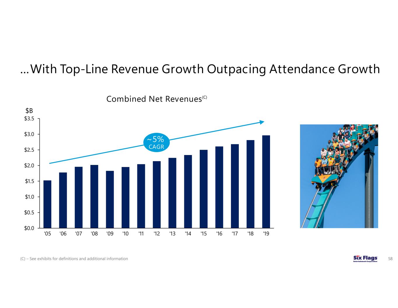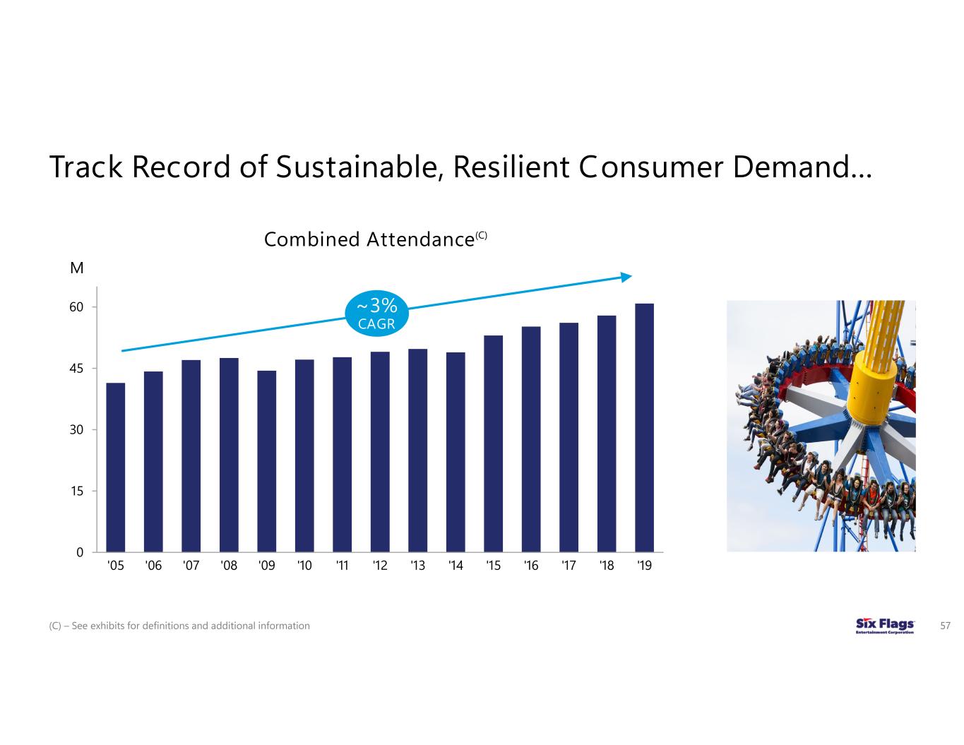 Track Record of Sustainable, Resilient Consumer Demand… 57 0 15 30 45 60 '05 '06 '07 '08 '09 '10 '11 '12 '13 '14 '15 '16 '17 '18 '19 Combined Attendance(C) ~3% CAGR M (C) – See exhibits for definitions and additional information