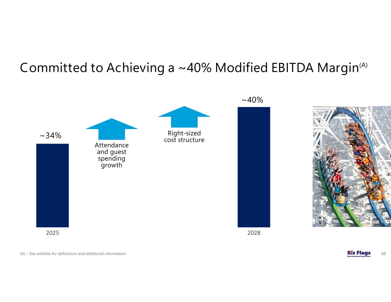 Committed to Achieving a ~40% Modified EBITDA Margin(A) (A) – See exhibits for definitions and additional information 68 2025 2028 ~40% ~34% Attendance and guest spending growth Right-sized cost structure