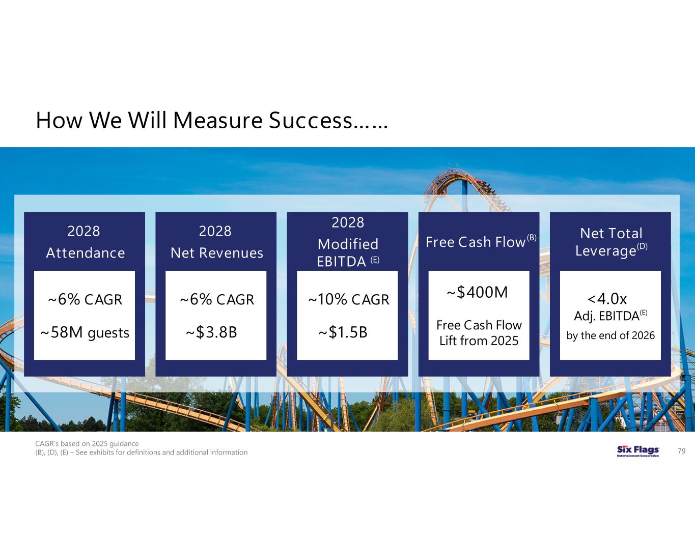 How We Will Measure Success…… 79 2028 Net Revenues 2028 Modified EBITDA (E) Free Cash Flow(B) Net Total Leverage(D) 2028 Attendance ~6% CAGR ~58M guests ~6% CAGR ~$3.8B ~10% CAGR ~$1.5B ~$400M Free Cash Flow Lift from 2025 <4.0x Adj. EBITDA(E) by the end of 2026 CAGR’s based on 2025 guidance (B), (D), (E) – See exhibits for definitions and additional information