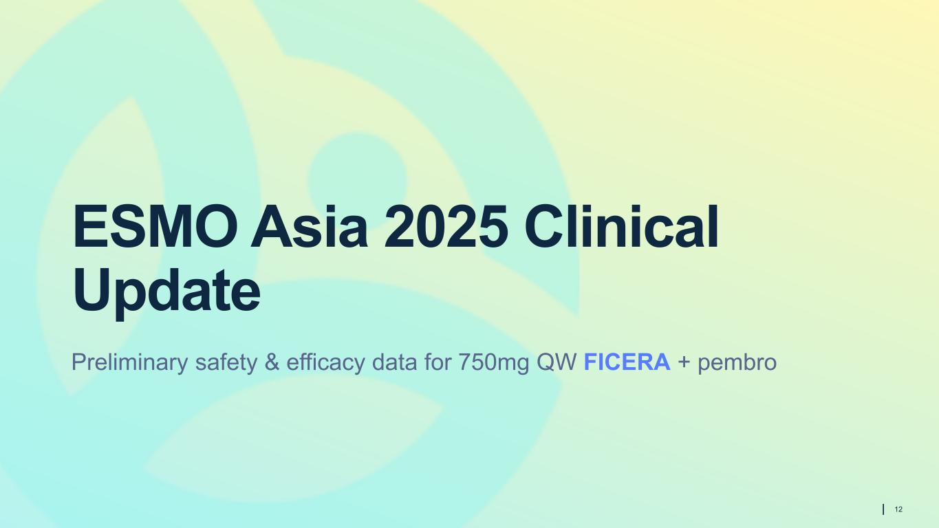 ESMO Asia 2025 Clinical Update Preliminary safety & efficacy data for 750mg QW FICERA + pembro 12