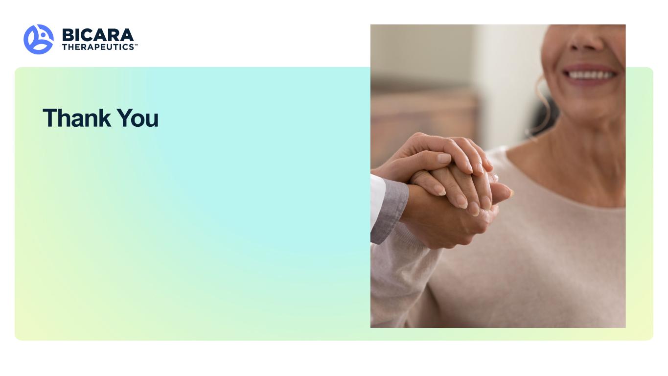 December 31, 2024, its Quarterly Report on Form 10-Q for the quarter ended September 30, 2025 and any subsequent filings Bicara makes with the SEC. In addition, any forward-looking statements represent Bicara’s views only as of today and should not be relied upon as representing its views as of any subsequent date. Bicara explicitly disclaims any obligation to update any forward-looking statements. No representations or warranties (expressed or implied) are made about the accuracy of any such forward- looking statements. Contacts Investors Jenna Cohen IR@bicara.com Media Amanda Lazaro 1AB Amanda@1abmedia.com
