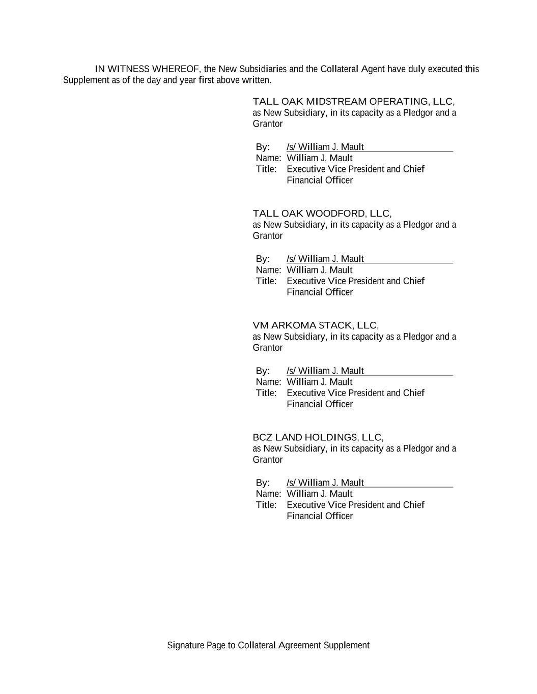 Signature Page to Collateral Agreement Supplement IN WITNESS WHEREOF, the New Subsidiaries and the Collateral Agent have duly executed this Supplement as of the day and year first above written. TALL OAK MIDSTREAM OPERATING, LLC, as New Subsidiary, in its capacity as a Pledgor and a Grantor By: /s/ William J. Mault Name: William J. Mault Title: Executive Vice President and Chief Financial Officer TALL OAK WOODFORD, LLC, as New Subsidiary, in its capacity as a Pledgor and a Grantor By: /s/ William J. Mault Name: William J. Mault Title: Executive Vice President and Chief Financial Officer VM ARKOMA STACK, LLC, as New Subsidiary, in its capacity as a Pledgor and a Grantor By: /s/ William J. Mault Name: William J. Mault Title: Executive Vice President and Chief Financial Officer BCZ LAND HOLDINGS, LLC, as New Subsidiary, in its capacity as a Pledgor and a Grantor By: /s/ William J. Mault Name: William J. Mault Title: Executive Vice President and Chief Financial Officer