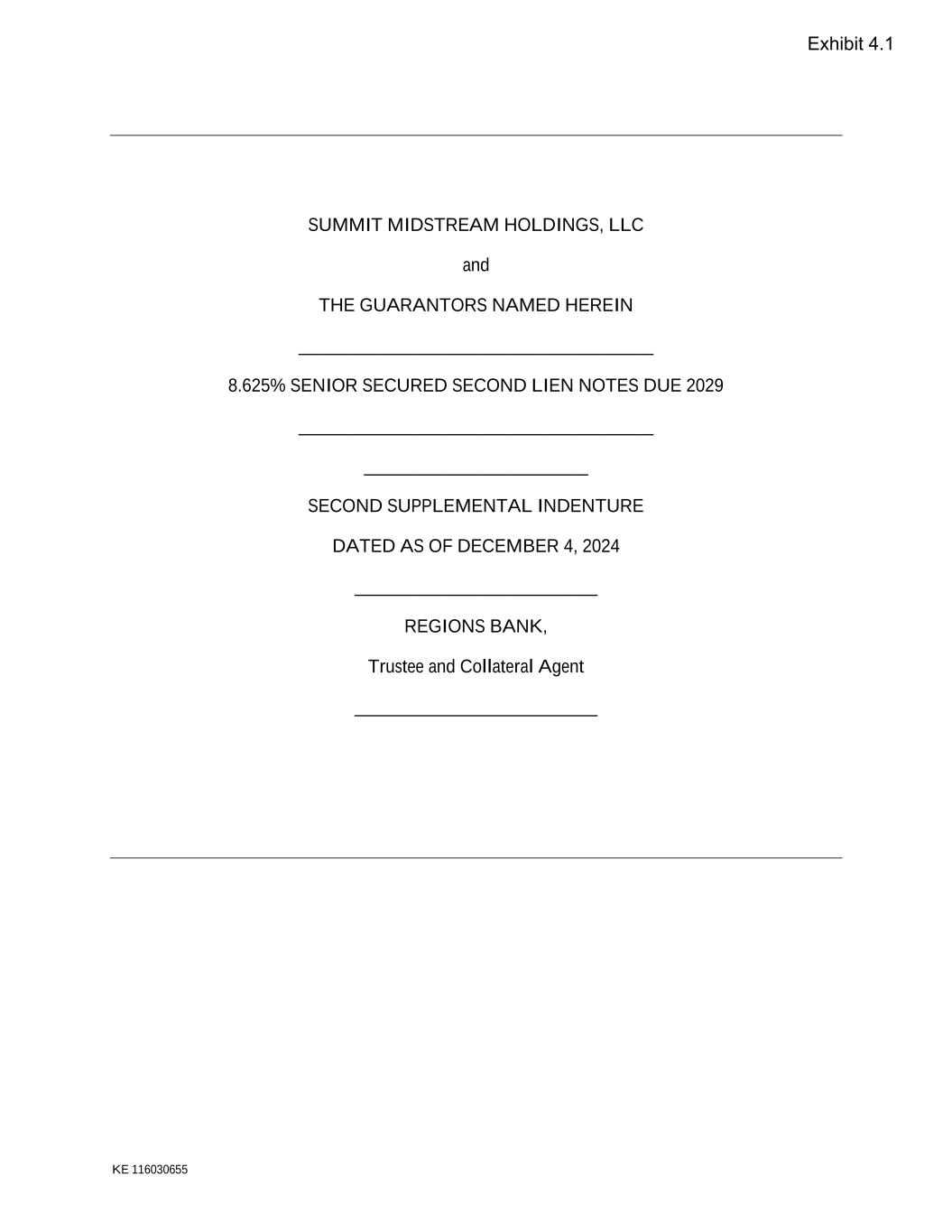 KE 116030655 SUMMIT MIDSTREAM HOLDINGS, LLC and THE GUARANTORS NAMED HEREIN ______________________________________ 8.625% SENIOR SECURED SECOND LIEN NOTES DUE 2029 ______________________________________ ________________________ SECOND SUPPLEMENTAL INDENTURE DATED AS OF DECEMBER 4, 2024 __________________________ REGIONS BANK, Trustee and Collateral Agent __________________________ Exhibit 4.1