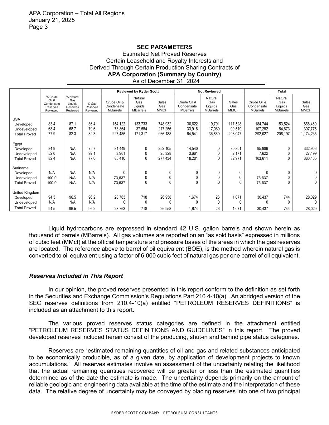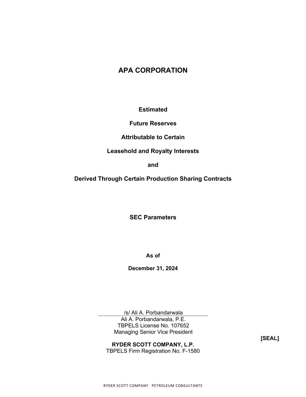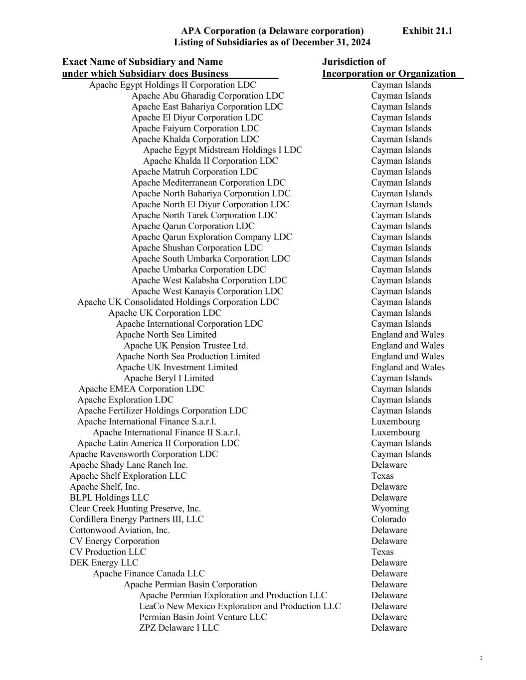 false2024FY000184166633.33http://fasb.org/us-gaap/2024#DeferredCostsAndOtherAssets http://fasb.org/us-gaap/2024#OtherAssetsCurrenthttp://fasb.org/us-gaap/2024#DeferredCostsAndOtherAssets http://fasb.org/us-gaap/2024#OtherAssetsCurrenthttp://fasb.org/us-gaap/2024#OtherLiabilitiesCurrenthttp://fasb.org/us-gaap/2024#OtherLiabilitiesCurrenthttp://fasb.org/us-gaap/2024#DebtCurrenthttp://fasb.org/us-gaap/2024#DebtCurrenthttp://fasb.org/us-gaap/2024#LongTermDebtAndCapitalLeaseObligationshttp://fasb.org/us-gaap/2024#LongTermDebtAndCapitalLeaseObligationshttp://fasb.org/us-gaap/2024#OtherLiabilitiesCurrenthttp://fasb.org/us-gaap/2024#OtherLiabilitiesCurrenthttp://fasb.org/us-gaap/2024#OtherLiabilitiesNoncurrenthttp://fasb.org/us-gaap/2024#OtherLiabilitiesNoncurrentiso4217:USDxbrli:sharesiso4217:USDxbrli:sharesapa:Areaxbrli:pureutr:acreapa:Projectiso4217:USDutr:bblapa:creditAgreementiso4217:GBPapa:optioniso4217:AUDapa:defendantapa:bondapa:letterapa:suretyapa:segmentutr:MBblsutr:MMcfutr:MBoe00018416662024-01-012024-12-3100018416662024-06-3000018416662025-01-3100018416662024-10-012024-12-310001841666apa:OilAndGasExcludingPurchasedMember2024-01-012024-12-310001841666apa:OilAndGasExcludingPurchasedMember2023-01-012023-12-310001841666apa:OilAndGasExcludingPurchasedMember2022-01-012022-12-310001841666us-gaap:OilAndGasPurchasedMember2024-01-012024-12-310001841666us-gaap:OilAndGasPurchasedMember2023-01-012023-12-310001841666us-gaap:OilAndGasPurchasedMember2022-01-012022-12-310001841666us-gaap:OilAndGasMember2024-01-012024-12-310001841666us-gaap:OilAndGasMember2023-01-012023-12-310001841666us-gaap:OilAndGasMember2022-01-012022-12-3100018416662023-01-012023-12-3100018416662022-01-012022-12-310001841666apa:NoncontrollingInterestEgyptMember2024-01-012024-12-310001841666apa:NoncontrollingInterestEgyptMember2023-01-012023-12-310001841666apa:NoncontrollingInterestEgyptMember2022-01-012022-12-310001841666apa:NoncontrollingInterestALTMMember2024-01-012024-12-310001841666apa:NoncontrollingInterestALTMMember2023-01-012023-12-310001841666apa:NoncontrollingInterestALTMMember2022-01-012022-12-3100018416662023-12-3100018416662022-12-3100018416662021-12-3100018416662024-12-310001841666apa:NoncontrollingInterestEgyptMember2024-12-310001841666apa:NoncontrollingInterestEgyptMember2023-12-310001841666us-gaap:RedeemablePreferredStockMember2021-12-310001841666us-gaap:CommonStockMember2021-12-310001841666us-gaap:AdditionalPaidInCapitalMember2021-12-310001841666us-gaap:RetainedEarningsMember2021-12-310001841666us-gaap:TreasuryStockCommonMember2021-12-310001841666us-gaap:AccumulatedOtherComprehensiveIncomeMember2021-12-310001841666us-gaap:ParentMember2021-12-310001841666us-gaap:NoncontrollingInterestMember2021-12-310001841666us-gaap:RetainedEarningsMember2022-01-012022-12-310001841666us-gaap:ParentMember2022-01-012022-12-310001841666us-gaap:NoncontrollingInterestMemberapa:NoncontrollingInterestEgyptMember2022-01-012022-12-310001841666us-gaap:NoncontrollingInterestMemberapa:NoncontrollingInterestALTMMember2022-01-012022-12-310001841666us-gaap:RedeemablePreferredStockMember2022-01-012022-12-310001841666us-gaap:AdditionalPaidInCapitalMember2022-01-012022-12-310001841666us-gaap:TreasuryStockCommonMember2022-01-012022-12-310001841666us-gaap:AccumulatedOtherComprehensiveIncomeMember2022-01-012022-12-310001841666us-gaap:RedeemablePreferredStockMember2022-12-310001841666us-gaap:CommonStockMember2022-12-310001841666us-gaap:AdditionalPaidInCapitalMember2022-12-310001841666us-gaap:RetainedEarningsMember2022-12-310001841666us-gaap:TreasuryStockCommonMember2022-12-310001841666us-gaap:AccumulatedOtherComprehensiveIncomeMember2022-12-310001841666us-gaap:ParentMember2022-12-310001841666us-gaap:NoncontrollingInterestMember2022-12-310001841666us-gaap:RetainedEarningsMember2023-01-012023-12-310001841666us-gaap:ParentMember2023-01-012023-12-310001841666us-gaap:NoncontrollingInterestMemberapa:NoncontrollingInterestEgyptMember2023-01-012023-12-310001841666us-gaap:AdditionalPaidInCapitalMember2023-01-012023-12-310001841666us-gaap:CommonStockMember2023-01-012023-12-310001841666us-gaap:TreasuryStockCommonMember2023-01-012023-12-310001841666us-gaap:AccumulatedOtherComprehensiveIncomeMember2023-01-012023-12-310001841666us-gaap:RedeemablePreferredStockMember2023-12-310001841666us-gaap:CommonStockMember2023-12-310001841666us-gaap:AdditionalPaidInCapitalMember2023-12-310001841666us-gaap:RetainedEarningsMember2023-12-310001841666us-gaap:TreasuryStockCommonMember2023-12-310001841666us-gaap:AccumulatedOtherComprehensiveIncomeMember2023-12-310001841666us-gaap:ParentMember2023-12-310001841666us-gaap:NoncontrollingInterestMember2023-12-310001841666us-gaap:RetainedEarningsMember2024-01-012024-12-310001841666us-gaap:ParentMember2024-01-012024-12-310001841666us-gaap:NoncontrollingInterestMemberapa:NoncontrollingInterestEgyptMember2024-01-012024-12-310001841666us-gaap:AdditionalPaidInCapitalMember2024-01-012024-12-310001841666us-gaap:CommonStockMember2024-01-012024-12-310001841666us-gaap:TreasuryStockCommonMember2024-01-012024-12-310001841666us-gaap:AccumulatedOtherComprehensiveIncomeMember2024-01-012024-12-310001841666us-gaap:RedeemablePreferredStockMember2024-12-310001841666us-gaap:CommonStockMember2024-12-310001841666us-gaap:AdditionalPaidInCapitalMember2024-12-310001841666us-gaap:RetainedEarningsMember2024-12-310001841666us-gaap:TreasuryStockCommonMember2024-12-310001841666us-gaap:AccumulatedOtherComprehensiveIncomeMember2024-12-310001841666us-gaap:ParentMember2024-12-310001841666us-gaap:NoncontrollingInterestMember2024-12-310001841666apa:NorthSeaMemberapa:OilAndGasPropertiesProvedMember2024-07-012024-09-300001841666apa:CallonPetroleumCompanyMember2024-04-012024-04-010001841666apa:PermianRegionMemberapa:OilandGasPropertiesProvedMember2024-07-012024-09-300001841666apa:NorthSeaMemberapa:OilAndGasPropertiesUnprovedMember2023-01-012023-12-310001841666apa:NorthSeaMemberapa:OilAndGasPropertiesUnprovedMember2022-01-012022-12-310001841666apa:NorthSeaMember2024-01-012024-12