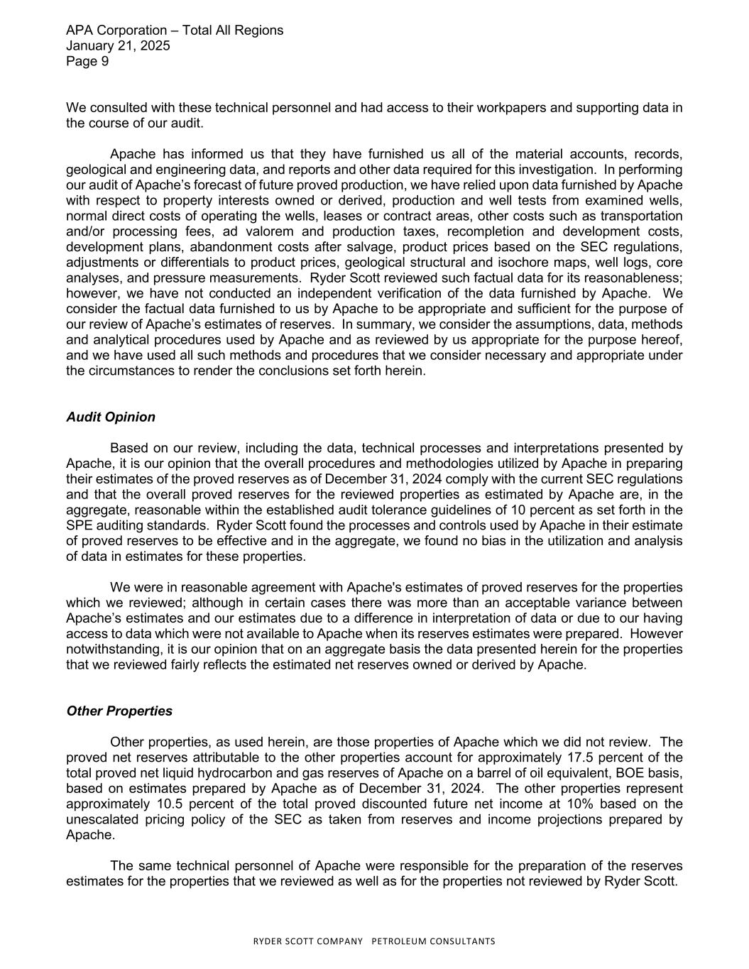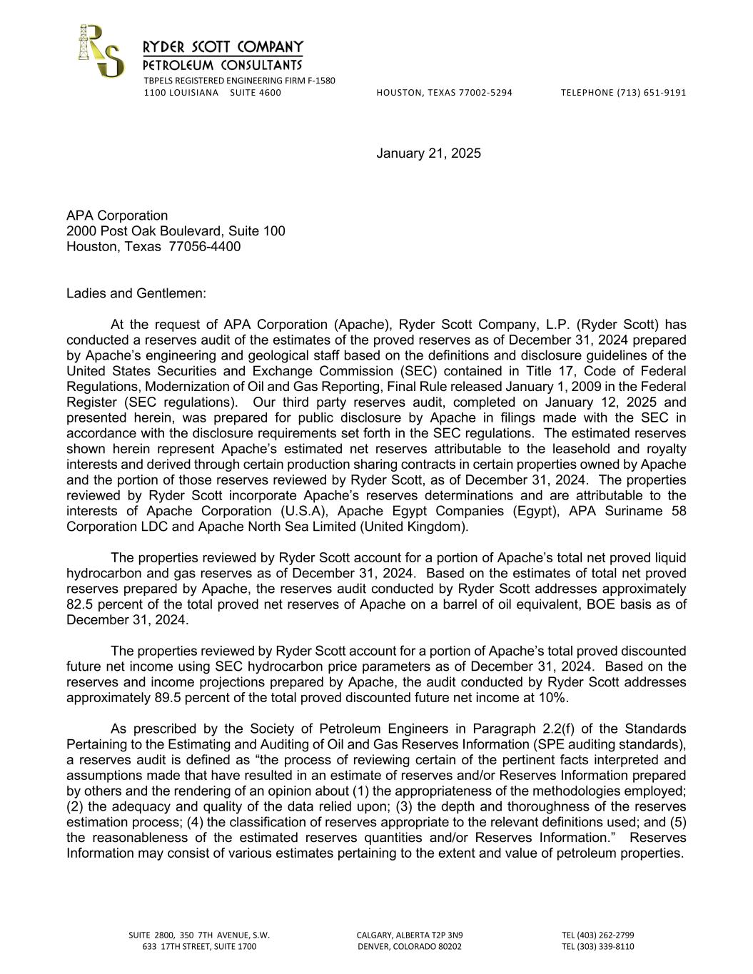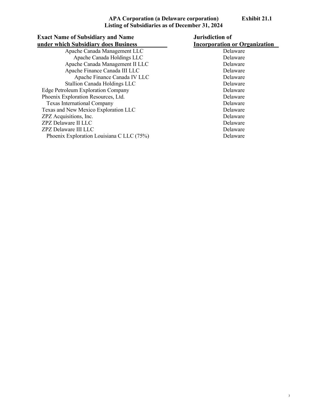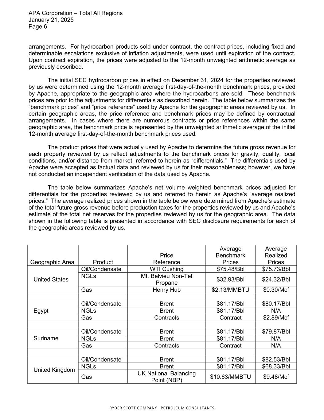 false2024FY000184166633.33http://fasb.org/us-gaap/2024#DeferredCostsAndOtherAssets http://fasb.org/us-gaap/2024#OtherAssetsCurrenthttp://fasb.org/us-gaap/2024#DeferredCostsAndOtherAssets http://fasb.org/us-gaap/2024#OtherAssetsCurrenthttp://fasb.org/us-gaap/2024#OtherLiabilitiesCurrenthttp://fasb.org/us-gaap/2024#OtherLiabilitiesCurrenthttp://fasb.org/us-gaap/2024#DebtCurrenthttp://fasb.org/us-gaap/2024#DebtCurrenthttp://fasb.org/us-gaap/2024#LongTermDebtAndCapitalLeaseObligationshttp://fasb.org/us-gaap/2024#LongTermDebtAndCapitalLeaseObligationshttp://fasb.org/us-gaap/2024#OtherLiabilitiesCurrenthttp://fasb.org/us-gaap/2024#OtherLiabilitiesCurrenthttp://fasb.org/us-gaap/2024#OtherLiabilitiesNoncurrenthttp://fasb.org/us-gaap/2024#OtherLiabilitiesNoncurrentiso4217:USDxbrli:sharesiso4217:USDxbrli:sharesapa:Areaxbrli:pureutr:acreapa:Projectiso4217:USDutr:bblapa:creditAgreementiso4217:GBPapa:optioniso4217:AUDapa:defendantapa:bondapa:letterapa:suretyapa:segmentutr:MBblsutr:MMcfutr:MBoe00018416662024-01-012024-12-3100018416662024-06-3000018416662025-01-3100018416662024-10-012024-12-310001841666apa:OilAndGasExcludingPurchasedMember2024-01-012024-12-310001841666apa:OilAndGasExcludingPurchasedMember2023-01-012023-12-310001841666apa:OilAndGasExcludingPurchasedMember2022-01-012022-12-310001841666us-gaap:OilAndGasPurchasedMember2024-01-012024-12-310001841666us-gaap:OilAndGasPurchasedMember2023-01-012023-12-310001841666us-gaap:OilAndGasPurchasedMember2022-01-012022-12-310001841666us-gaap:OilAndGasMember2024-01-012024-12-310001841666us-gaap:OilAndGasMember2023-01-012023-12-310001841666us-gaap:OilAndGasMember2022-01-012022-12-3100018416662023-01-012023-12-3100018416662022-01-012022-12-310001841666apa:NoncontrollingInterestEgyptMember2024-01-012024-12-310001841666apa:NoncontrollingInterestEgyptMember2023-01-012023-12-310001841666apa:NoncontrollingInterestEgyptMember2022-01-012022-12-310001841666apa:NoncontrollingInterestALTMMember2024-01-012024-12-310001841666apa:NoncontrollingInterestALTMMember2023-01-012023-12-310001841666apa:NoncontrollingInterestALTMMember2022-01-012022-12-3100018416662023-12-3100018416662022-12-3100018416662021-12-3100018416662024-12-310001841666apa:NoncontrollingInterestEgyptMember2024-12-310001841666apa:NoncontrollingInterestEgyptMember2023-12-310001841666us-gaap:RedeemablePreferredStockMember2021-12-310001841666us-gaap:CommonStockMember2021-12-310001841666us-gaap:AdditionalPaidInCapitalMember2021-12-310001841666us-gaap:RetainedEarningsMember2021-12-310001841666us-gaap:TreasuryStockCommonMember2021-12-310001841666us-gaap:AccumulatedOtherComprehensiveIncomeMember2021-12-310001841666us-gaap:ParentMember2021-12-310001841666us-gaap:NoncontrollingInterestMember2021-12-310001841666us-gaap:RetainedEarningsMember2022-01-012022-12-310001841666us-gaap:ParentMember2022-01-012022-12-310001841666us-gaap:NoncontrollingInterestMemberapa:NoncontrollingInterestEgyptMember2022-01-012022-12-310001841666us-gaap:NoncontrollingInterestMemberapa:NoncontrollingInterestALTMMember2022-01-012022-12-310001841666us-gaap:RedeemablePreferredStockMember2022-01-012022-12-310001841666us-gaap:AdditionalPaidInCapitalMember2022-01-012022-12-310001841666us-gaap:TreasuryStockCommonMember2022-01-012022-12-310001841666us-gaap:AccumulatedOtherComprehensiveIncomeMember2022-01-012022-12-310001841666us-gaap:RedeemablePreferredStockMember2022-12-310001841666us-gaap:CommonStockMember2022-12-310001841666us-gaap:AdditionalPaidInCapitalMember2022-12-310001841666us-gaap:RetainedEarningsMember2022-12-310001841666us-gaap:TreasuryStockCommonMember2022-12-310001841666us-gaap:AccumulatedOtherComprehensiveIncomeMember2022-12-310001841666us-gaap:ParentMember2022-12-310001841666us-gaap:NoncontrollingInterestMember2022-12-310001841666us-gaap:RetainedEarningsMember2023-01-012023-12-310001841666us-gaap:ParentMember2023-01-012023-12-310001841666us-gaap:NoncontrollingInterestMemberapa:NoncontrollingInterestEgyptMember2023-01-012023-12-310001841666us-gaap:AdditionalPaidInCapitalMember2023-01-012023-12-310001841666us-gaap:CommonStockMember2023-01-012023-12-310001841666us-gaap:TreasuryStockCommonMember2023-01-012023-12-310001841666us-gaap:AccumulatedOtherComprehensiveIncomeMember2023-01-012023-12-310001841666us-gaap:RedeemablePreferredStockMember2023-12-310001841666us-gaap:CommonStockMember2023-12-310001841666us-gaap:AdditionalPaidInCapitalMember2023-12-310001841666us-gaap:RetainedEarningsMember2023-12-310001841666us-gaap:TreasuryStockCommonMember2023-12-310001841666us-gaap:AccumulatedOtherComprehensiveIncomeMember2023-12-310001841666us-gaap:ParentMember2023-12-310001841666us-gaap:NoncontrollingInterestMember2023-12-310001841666us-gaap:RetainedEarningsMember2024-01-012024-12-310001841666us-gaap:ParentMember2024-01-012024-12-310001841666us-gaap:NoncontrollingInterestMemberapa:NoncontrollingInterestEgyptMember2024-01-012024-12-310001841666us-gaap:AdditionalPaidInCapitalMember2024-01-012024-12-310001841666us-gaap:CommonStockMember2024-01-012024-12-310001841666us-gaap:TreasuryStockCommonMember2024-01-012024-12-310001841666us-gaap:AccumulatedOtherComprehensiveIncomeMember2024-01-012024-12-310001841666us-gaap:RedeemablePreferredStockMember2024-12-310001841666us-gaap:CommonStockMember2024-12-310001841666us-gaap:AdditionalPaidInCapitalMember2024-12-310001841666us-gaap:RetainedEarningsMember2024-12-310001841666us-gaap:TreasuryStockCommonMember2024-12-310001841666us-gaap:AccumulatedOtherComprehensiveIncomeMember2024-12-310001841666us-gaap:ParentMember2024-12-310001841666us-gaap:NoncontrollingInterestMember2024-12-310001841666apa:NorthSeaMemberapa:OilAndGasPropertiesProvedMember2024-07-012024-09-300001841666apa:CallonPetroleumCompanyMember2024-04-012024-04-010001841666apa:PermianRegionMemberapa:OilandGasPropertiesProvedMember2024-07-012024-09-300001841666apa:NorthSeaMemberapa:OilAndGasPropertiesUnprovedMember2023-01-012023-12-310001841666apa:NorthSeaMemberapa:OilAndGasPropertiesUnprovedMember2022-01-012022-12-310001841666apa:NorthSeaMember2024-01-012024-12