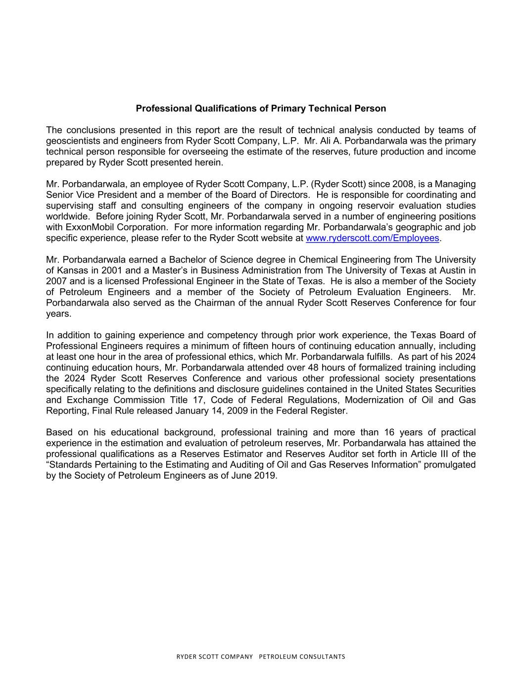 本アニュアルレポート・オン・フォーム10-Kには、1933年証券法第27A条(改正証券法)および1934年証券取引法第21E条(改正取引所法)に定義される「将来予想に関する記述」が含まれています。本フォーム10-K年次報告書に含まれる、または参照により組み込まれる過去の事実に関する記述以外のすべての記述(当社の将来の財政状態、事業戦略、予算、予想収益、予想費用、および将来の事業運営と資本還元の枠組みに関する経営陣の計画と目的に関する記述を含みますが、これらに限定されません)は、将来予想に関する記述です。このような将来予想に関する記述は、過去の営業動向、2024年12月31日現在の確認埋蔵量の見積もりを作成するために使用した情報、および当社が保有する、または第三者から入手可能なその他のデータの調査に基づいています。また、一般的に、将来見通しに関する記述は、「かもしれない」、「予定である」、「可能性がある」、「期待する」、「意図する」、「計画する」、「推定する」、「予測する」、「計画する」、「信じる」、「継続する」、「求める」、「ガイダンス」、「目標」、「かもしれない」、「見通し」、「おそらく」、「可能性」、「見通し」、「はずである」、「だろう」、または類似の用語などの将来見通しに関する用語の使用により識別することができますが、これらの用語が使用されていない場合でも、その記述が将来見通しに関する記述ではないことを意味するものではありません。当社は、このような将来見通しに関する記述に反映されている予想が、このような状況下で合理的なものであると信じていますが、このような予想が正しかったと証明される保証はありません。実際の結果が当社の予想と大きく異なる可能性のある重要な要因には、以下の仮定が含まれますが、これらに限定されるものではありません: